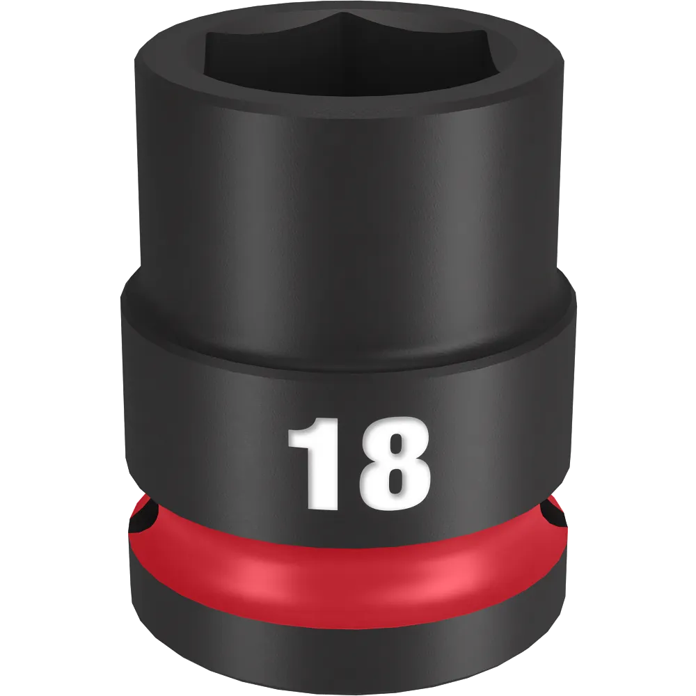 The MILWAUKEE® SHOCKWAVE Impact Duty™ 1/2″ Drive 18MM Standard 6 Point Socket features the boldest, longest-lasting markings and extreme impact durability in high torque applications. The stamped and ink-filled size marking enables an accurate socket selection every time throughout the life of the socket. Engineered with high-strength forged steel for optimized performance in heavy-duty applications, and a non-slip hex geometry prevents fastener rounding. The dual-hole design and ring groove allow for easy socket attachment and removal. All SHOCKWAVE Impact Duty™ Sockets are backed by a Lifetime Guarantee and meet ASME industry standards.