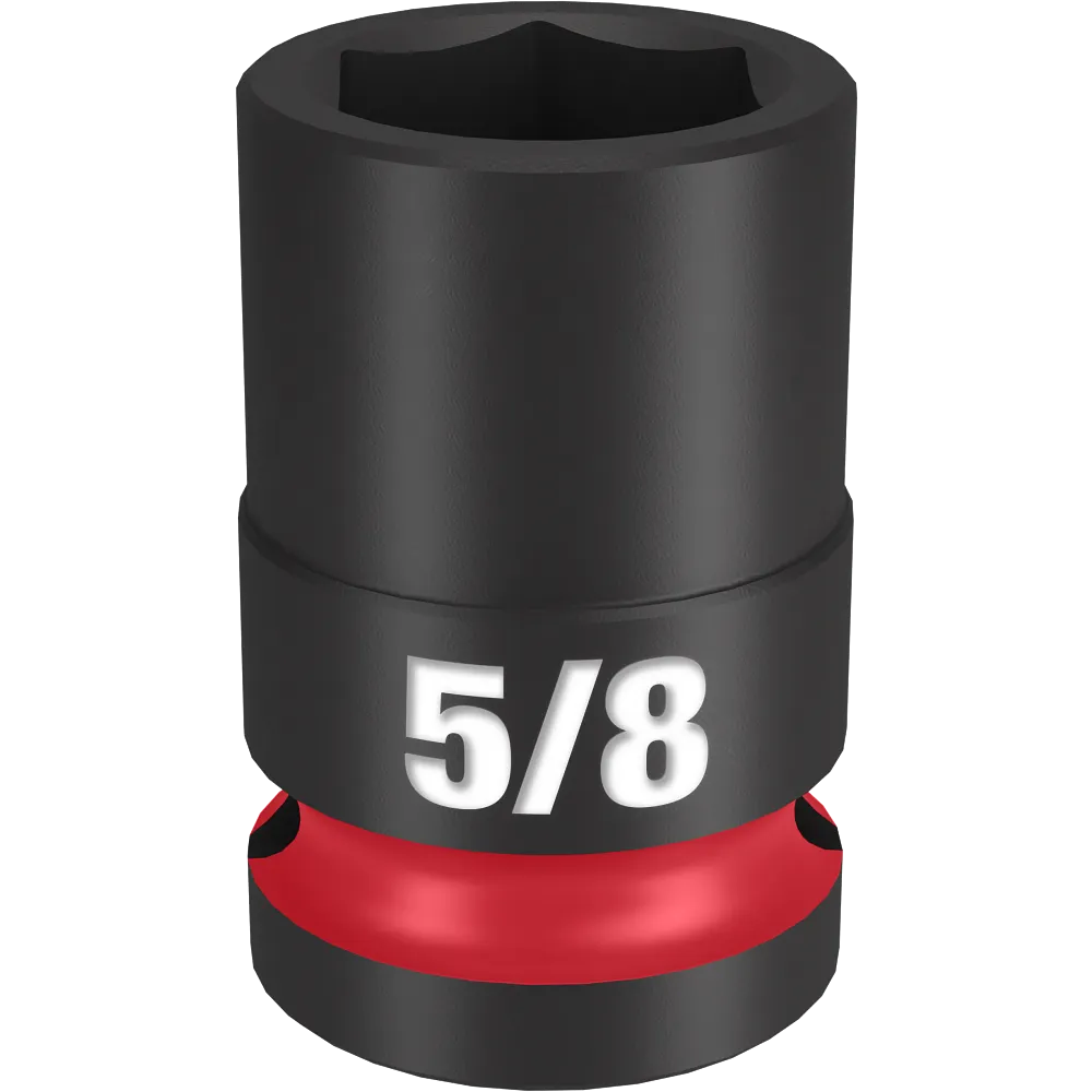 The MILWAUKEE® SHOCKWAVE Impact Duty™ 1/2″ Drive 5/8″ Standard 6 Point Socket features the boldest, longest-lasting markings and extreme impact durability in high torque applications. The stamped and ink-filled size marking enables an accurate socket selection every time throughout the life of the socket. Engineered with high-strength forged steel for optimized performance in heavy-duty applications, and a non-slip hex geometry prevents fastener rounding. The dual-hole design and ring groove allow for easy socket attachment and removal. All SHOCKWAVE Impact Duty™ Sockets are backed by a Lifetime Guarantee and meet ASME industry standards.