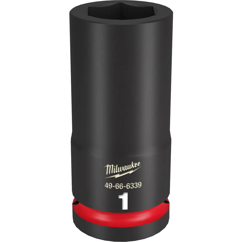 The MILWAUKEE® SHOCKWAVE Impact Duty™ 3/4″ Drive 1″ Deep 6 Point Socket features the boldest, longest-lasting markings and extreme impact durability in high torque applications. The stamped and ink-filled size marking enables an accurate socket selection every time throughout the life of the socket. Engineered with high-strength forged steel for optimized performance in heavy-duty applications, and a non-slip hex geometry prevents fastener rounding. The dual-hole design and ring groove allow for easy socket attachment and removal. All SHOCKWAVE Impact Duty™ Sockets are backed by a Lifetime Guarantee and meet ASME industry standards. Compatible with optional Retaining Ring (49-66-6743).