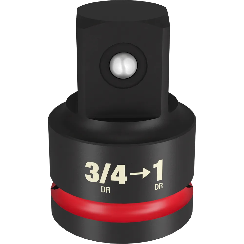 The MILWAUKEE® SHOCKWAVE Impact Duty™ 3/4” Drive to 1” Drive Socket Adapter provides tool versatility and durability in high torque applications. This adapter converts 3/4” drive tools to be used with 1” drive impact sockets. Milwaukee engineered these adapters with forged steel for durability in high torque applications. The laser-etched size markings allow for easy size identification. The dual-hole design and ring groove make for easy adapter attachment and removal. All SHOCKWAVE Impact Duty™ Socket Adapters meet ASME industry standards.