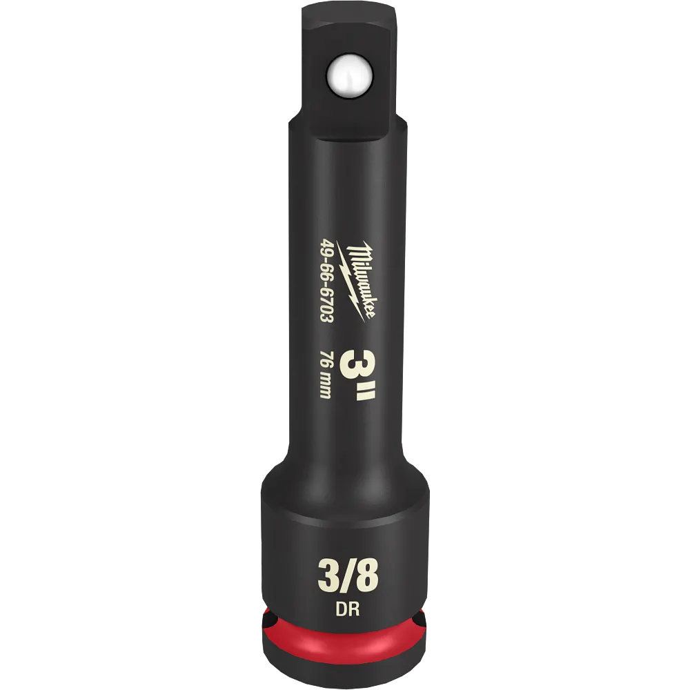 The MILWAUKEE® SHOCKWAVE Impact Duty™ 3/8″ Drive 3″ Extension provides better access in hard to reach places and offers extreme impact durability in high torque applications. The laser-etched size markings allow for fast identification of drive size and length. The dual-hole design and ring groove allow for easy attachment and removal of the extensions. All SHOCKWAVE Impact Duty™ Socket Extensions are backed by a Lifetime Guarantee and meet ASME industry standards.