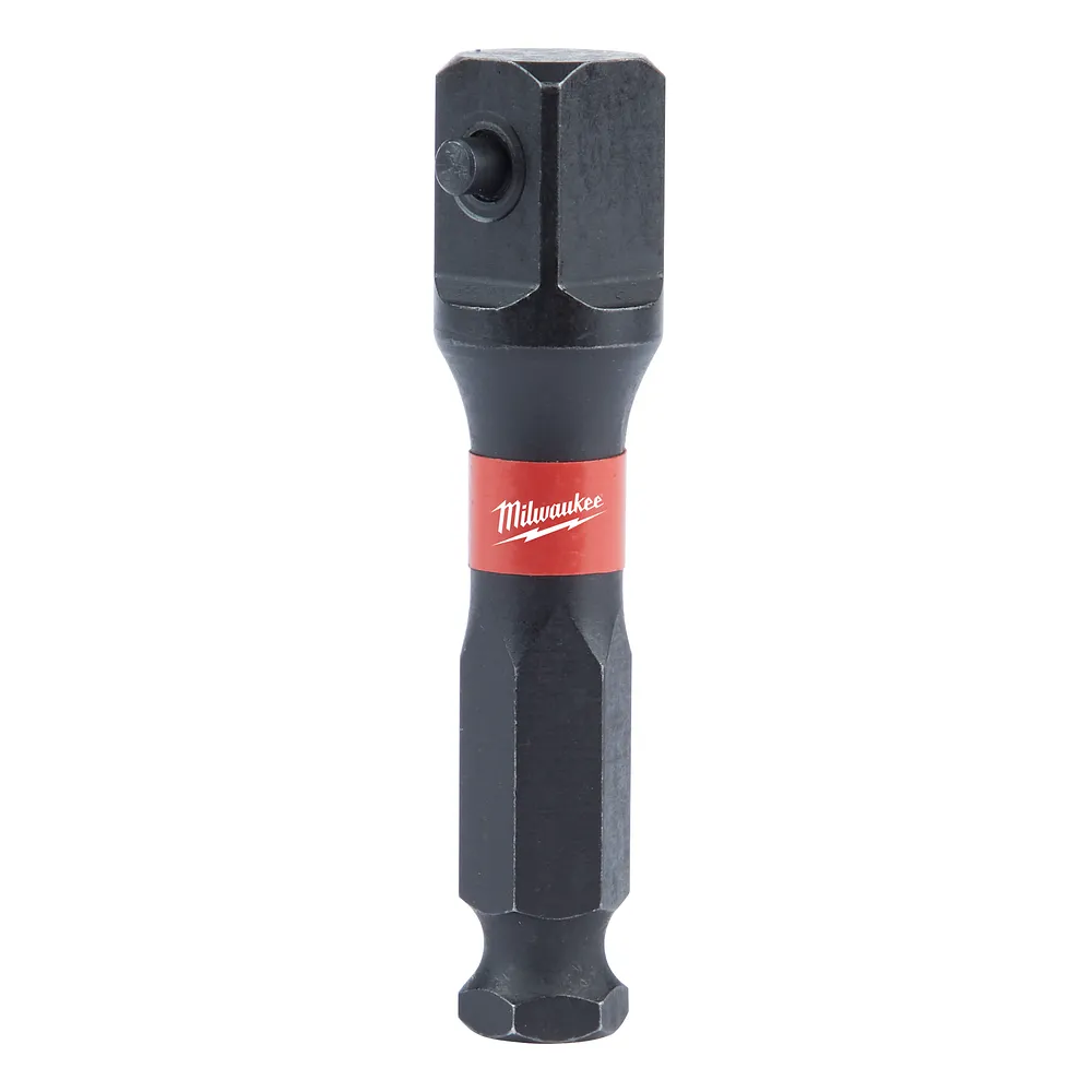 The Milwaukee SHOCKWAVE™ lineman’s 7/16 in. hex to 1/2 in. square adapter is the most durable adapter on the market and it’s pin detent allows for better retention to the socket. The adapter features an optimized Shockzone™ that absorbs peak torque and prevents the adapter from breaking, providing up to 30X life. The adapter is made from Custom Alloy76™ steel, which maximizes it’s resistance to wear and shock. The 7/16 in. hex shanks allows the adapter to lock into all 7/16 in. quick connect chucks.