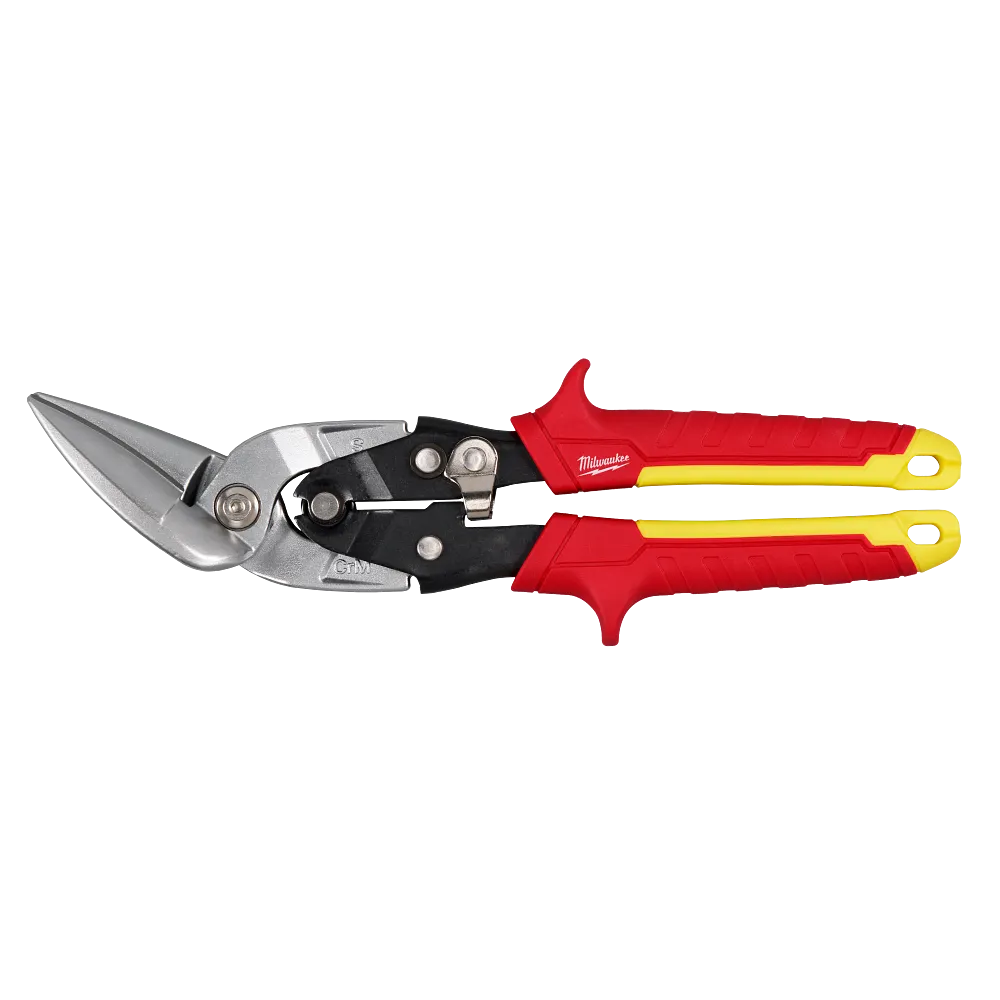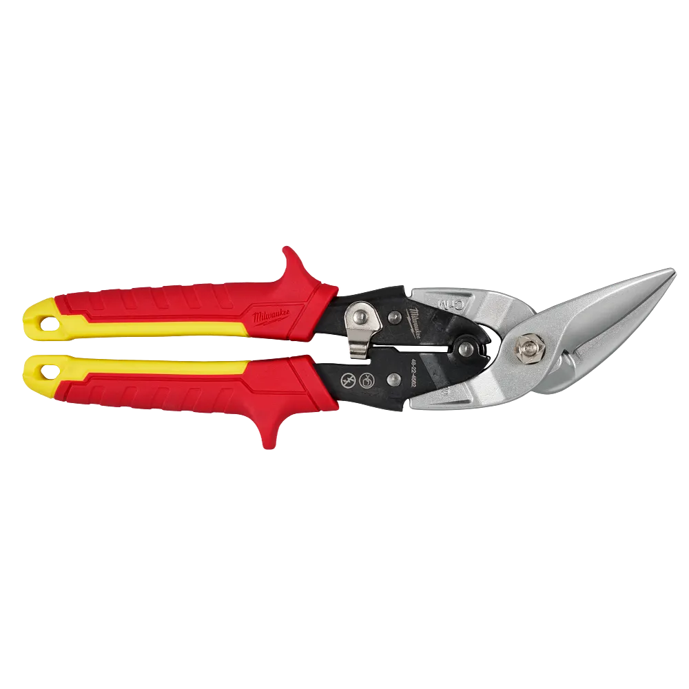 MILWAUKEE® Straight Cutting Offset Aviation Snips are built for long life and clean cuts. Forged blades with laser-hardened edges are durable and deliver long life. Sharp, serrated blades provide smooth and clean cuts. The handles are designed to deliver easy, low-effort cutting. BOLT LOCK™ ensures the blades won’t loosen and chrome plating provides rust protection. The color-coded handles allow for easy identification on the job. The metal lock secures the tool for storage and is easily operated with one hand. The offset model features a 45-degree offset handle for clearance over the cut material. These snips are ideal for making straight, left, or right cuts.