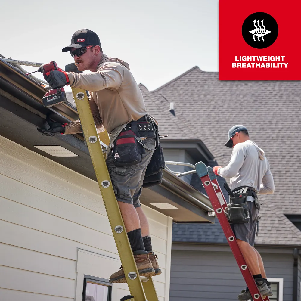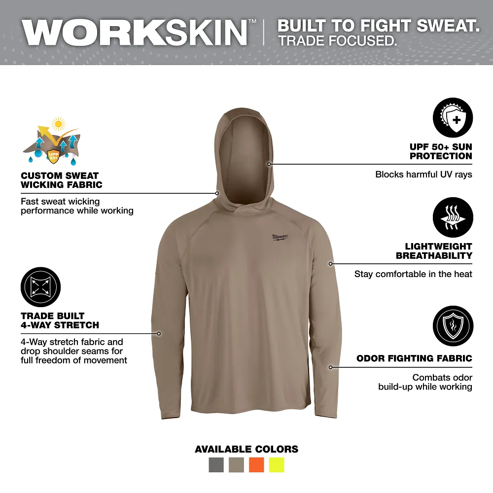 Part of the MILWAUKEE® WORKSKIN™ Collection, the Hooded Sun Shirt is BUILT TO FIGHT SWEAT. Engineered with a custom sweat wicking fabric, the WORKSKIN™ Hooded Sun Shirt is designed to keep you dry and comfortable. Complete with UPF 50+ sun protection and odor fighting technology, this Sun Shirt is perfect for hot summer days on the job. Milwaukee WORKSKIN™ products are developed in collaborating with feedback from users across the trades through continuous jobsite research.