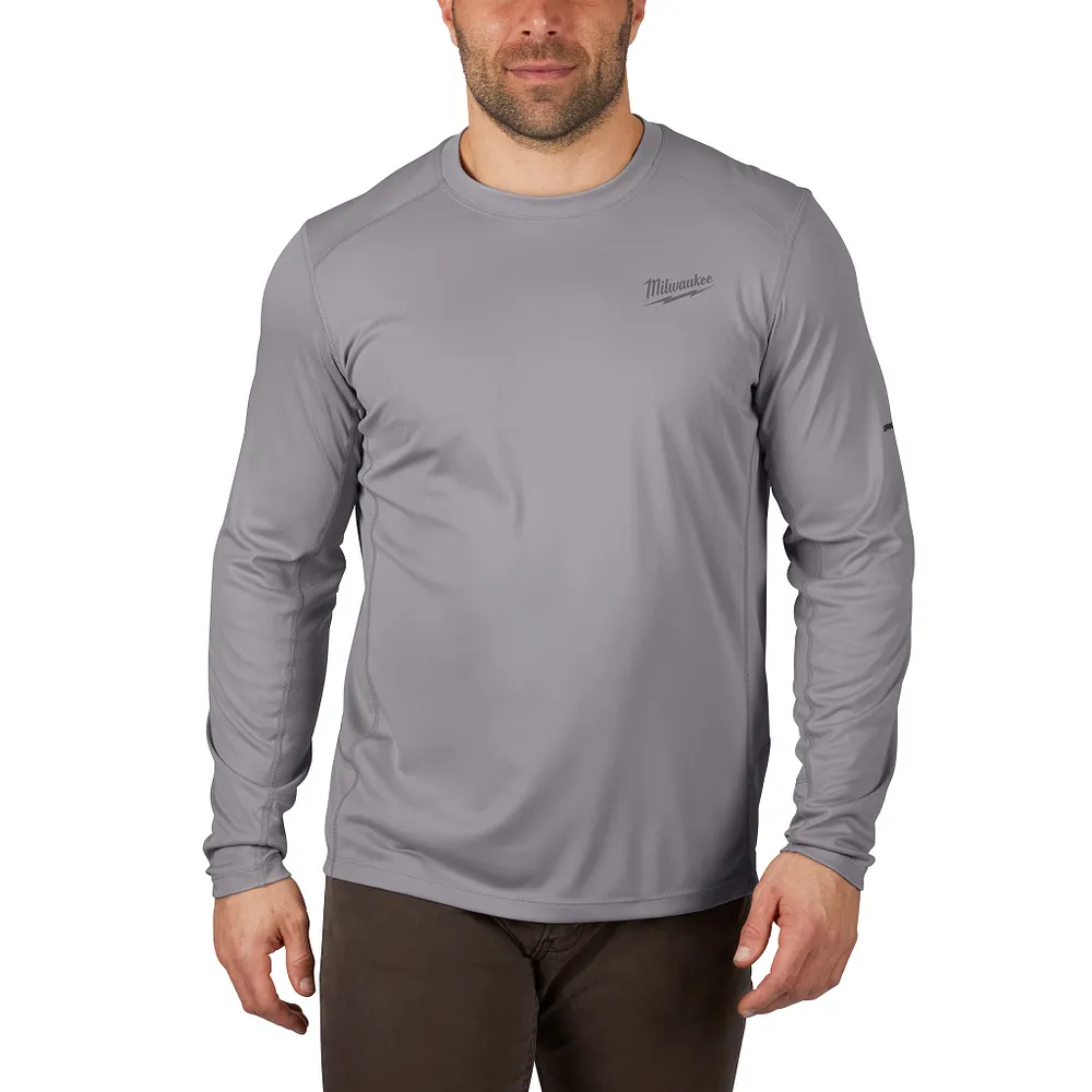 Part of the MILWAUKEE® WORKSKIN™ Collection, our Long Sleeve Lightweight Performance Shirt is BUILT TO FIGHT SWEAT. Our WORKSKIN™ Lightweight Performance Long Sleeve Shirt is designed for tradesmen who need their next-to-skin layer to dry fast, keep them cool, and protect them from harmful UV rays. Get a work shirt that matches your level of performance every day with a MILWAUKEE® WORKSKIN™. These high-performance work shirts are made from moisture-wicking fabric that helps you stay dry, while the 100% polyester material dries fast and resists wrinkles, unlike standard cotton base layers. The relaxed fit and raglan sleeves allow you to move freely to accomplish any task for comfortable all day wear.